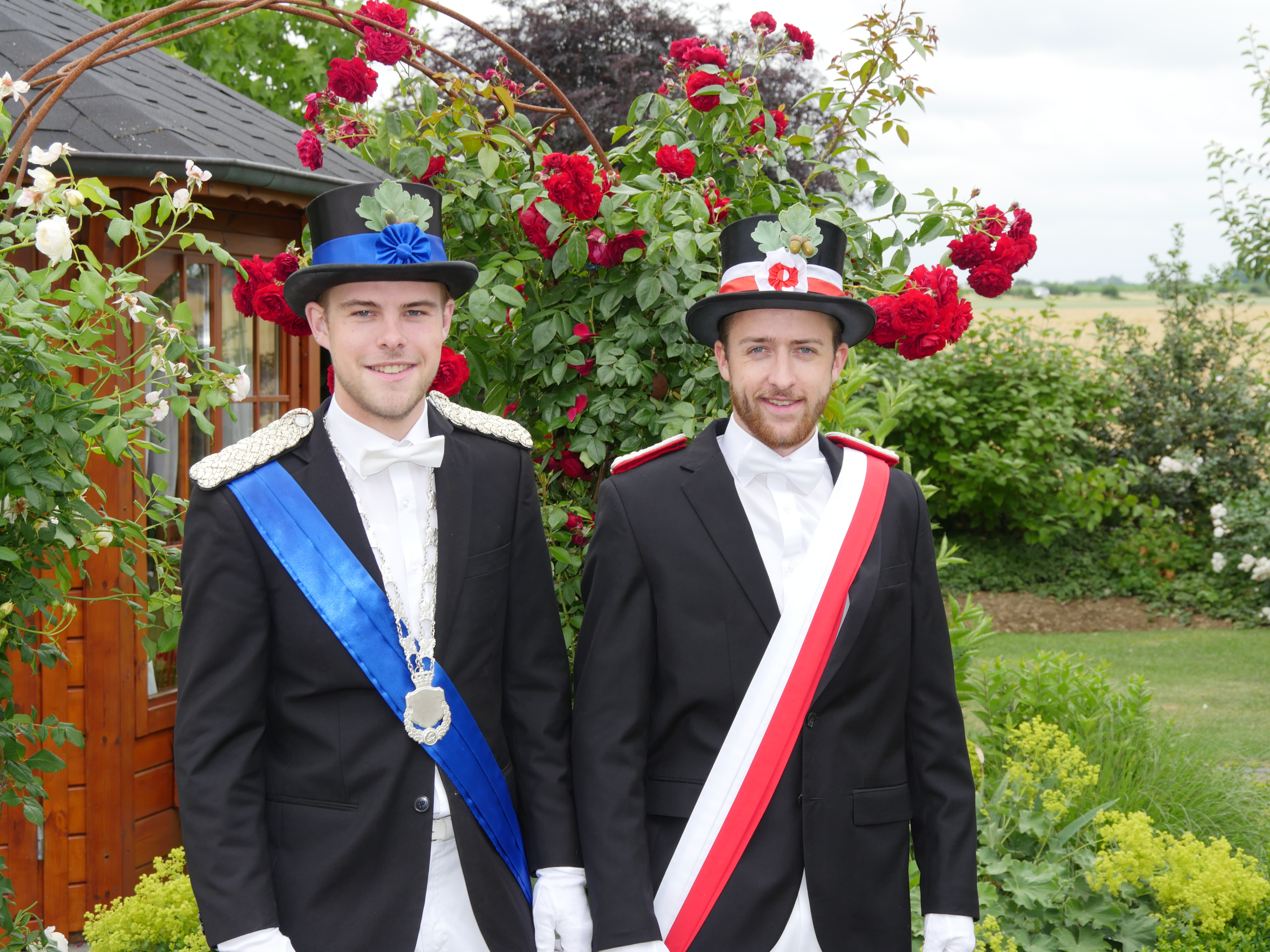 Drohte tagsüber Petrus noch mit Regen, so klarte es zum Abend hin auf und es konnte bei strahlendem Sonnenschein (aber bei doch kühlenTemperaturen) das siebte Jungschützenkönigsschießen, am Freitag, den 22.06.2017 auf der Vogelschießanlage beim Schwalbenwirt in Öchtringhausen stattfinden. 23 Jungschützen machten sich auf, um Jagd auf die Insignien und vor allem auf die Würde des Störmeder Jungschützenkönig zu machen. Nach sechzig Schuß mit der Kleinkalibermunition standen die Insignienträger fest: Apfel und Faß schoss Sören Wiese die Krone holte sich Jan Sauermann und das Zepter Alexander Beklas. Dann wurde mit dem Großkaliber weitergeschossen und nach weiteren siebzig Schuss befreite Alexander Beklas, der erneut seine Treffsicherheit unter Beweis stellte, den Aar aus seinem Vogelkasten. Zu seinem Adjudanten wählte er den ebenso treffsicheren Sören Wiese..