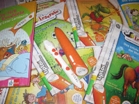 gemischte Hörbücher für Erwachsene, Bücher speziell für Leseanfänger, Ting-Hörstift und Tiptoi-Stift zum Begutachten und Ausprobieren