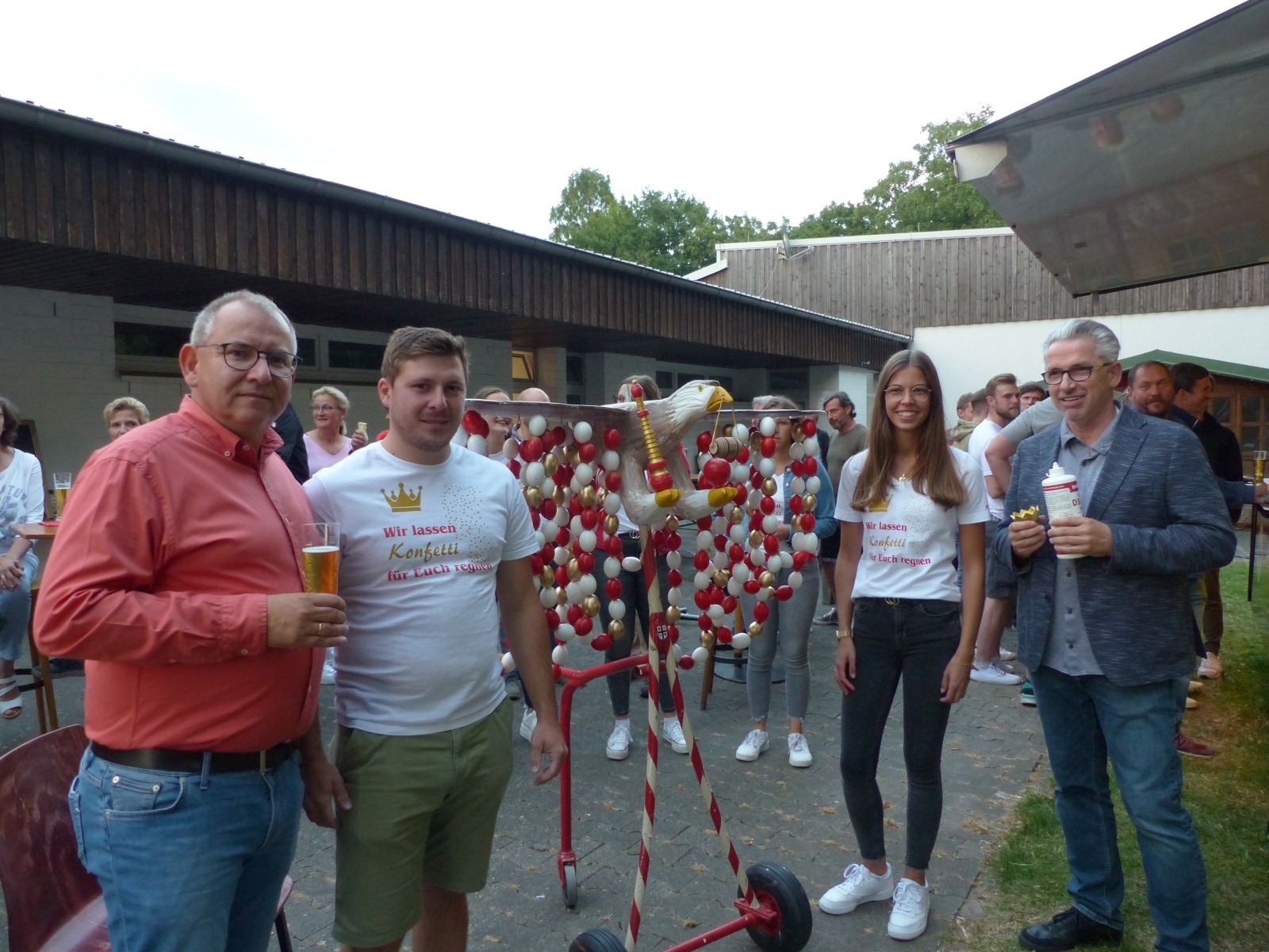 Oberst Peter Stephan , Königspaar Dennis Brinkhaus und Clarissa Kosfeld, Vogelbauer Alex Tarun (Bild Niklas Ring)