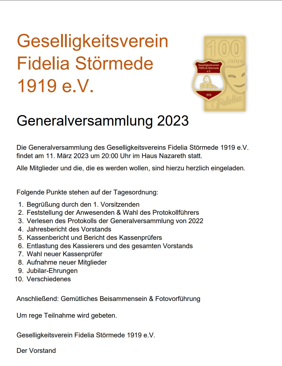 Fidelia Generalversammlung 2023