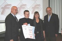 Die Störmeder Fleischerei erhielt in den letzten Tagen zwei Auszeichnungen für die Qualitätsprodukte „lufttrockene Mettwurst mit Zwiebeln“ (Gold) und die Fleischwurst im Ring (Silber) von der Deutschen Landwirtschafts-Gesellschaft (DLG). Insgesamt wurden über 2.000 verschiedene Wurst-Arten eingesandt, von denen ca. 100 prämiert wurden. Das Foto zeigt den Präsidenten des deutschen Fleischerverbands Manfred Rycken(links) und den Vorsitzenden der Lebensmittel-Kontrolleure NRW Konrad Etteler, sowie die Gewinner Markus und Elisabeth Kölbel.