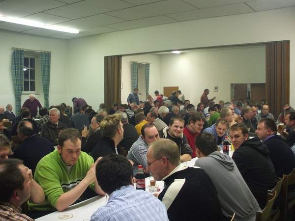 Trotz des schlechten Wetters konnte Oberst Heinrich Siedhoff 145 Schützenbrüder im Haus Nazareth zur turnusmäigen Generalversammlung begrüßen. Nach dem Totengedenken und dem Verlesen des Protokolls der letzten Generalversammlung wurden durch die Versammlung 31 neue Mitglieder in die Bruderschaft aufgenommen. Dies ist eine ganz bemerkenswerte Zahl, vor allem, wenn man bedenkt, dass ein Großteil der Neumitglieder aus Störmede kommt. Am Tag der Versammlung hat die Bruderschaft stolze 819 Mitglieder. Während und nach der Versammlung meldeten sich noch Tobias Rieländer, Thorsten Sternberg und der neue Wirt der Gaststätte „Gemütlichkeit“, Marko Körner, zur Aufnahme in die Bruderschaft an. In seinem Geschäftsbericht berichtete Geschäftsführer Peter Stephan von den zahlreichen Aktivitäten und Veranstaltungen der Bruderschaft im letzten Jahr. Insbesondere ging er nochmals auf das zurückliegende Schützenfest, das ganz im Zeichen der Fußball-WM stand, ein. Ein weiterer Höhepunkt im letzten Jahr war natürlich das tolle Kreisschützenfest im Nachbardorf Langeneicke. Peter Stephan berichtete weiter von den durchgeführten Pflasterarbeiten zur Erweiterung des Schützenplatzes. Beim kommenden Schützenfest können sich alle Schützenbrüder vor Ort davon überzeugen, dass der gesamte Platz inzwischen ein gelungenes Bild abgibt. Im Anschluss an die Versammlung spendeten übrigens die Kath. Kirchengemeinde Störmede, der Kulturring Störmede, der Musikzug Störmede, das Tambourkorps Störmede, Franz Pieper, Franz-Josef Schwarte, Franz Harrenkamp,das Königspaar 2003/2004, Michael und Stefanie Dömer, und unser Oberst Heinrich Siedhoff jeweils einen Baum für den neu angelegten Bereich hinter der Halle. Schatzmeister Windfried Maas-Scheck berichtete anschließend in seinem Kassenbericht über solide Vereinsfinanzen, so dass dem Kassierer und dem gesamten Vorstand auf Antrag des Kassenprüfers Clemens Langehans einstimmig Entlastung erteilt wurde. Zum neuen Kassenprüfer wurde von der Versammlung Werner Jütte gewählt. Nachdem die Versammlung einstimmig beschloss, dass auch in diesem Jahr unser Schützenfest in traditioneller Weise gefeiert werden soll, erläuterte Geschäftsführer Peter Stephan den Stand der Vorbereitungen. Die Verträge mit den Kapellen und dem Festwirt sind bereits abgeschlossen. Mit Einsicht und Verständnis nahm die Versammlung zur Kenntnis, dass das Glas Bier in diesem Jahr erstmals 1,10 Euro kosten wird. Die finanziellen Rahmenbedingungen lassen leider keinen nierigeren Glasbierpreis mehr zu. Mit einem Hoch auf die Bruderschaft und der Nationalhymne endete die diesjährige Generalversammlung.