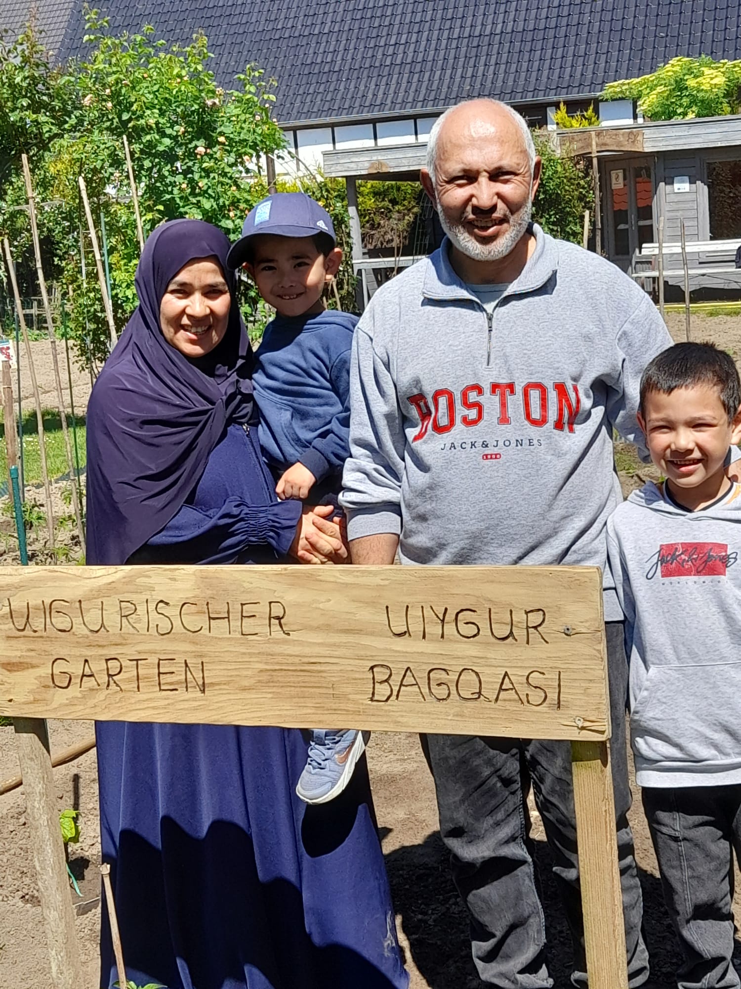 Ein besonderes Zeichen der Wertschätzung ist das neue Gartenschild, das in deutscher und uygurischer Sprache gestaltet wurde. Unser Freund Josef Holtkötter hat es liebevoll angefertigt – ein schönes Symbol für gelebte Integration und kulturelle Vielfalt.