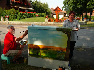 Wie schon der örtlichen Presse zu entnehmen war, ist die Störmeder Kunstmalerin Leusilene Gehlen eifrig dabei, die Strom und Telefonverteilerkästen im Ort mit heimischen Motiven zu verschönern. Unterstützt wird sie dabei von drei weiteren Hobby Malern. Auf dem Bild sehen wir die Künstler Eleonore Fuhrmann und Ulli Hillebrand. Auch Elke Heinrich und Heidi Deiters steuerten mit ihrer künstlerischen Ader imposante Motive an den Straßenrand.