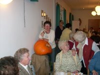 Um einen Preis bei der diesjährigen Verlosung zu bekommen mussten die Landfrauen das Gewicht eines Riesenkürbisses schätzen.