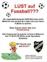 Die Jugendabteilung des SUS Störmede sucht für die G.-Jugend, Mädchen und Jungen ab 4.Jahre, die Spaß haben Fußball zu spielen.