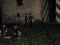 Erstmalig fand in diesem Jahr das Martinsspiel am Torbogen an der Schlossruine statt. Die Verantwortlichen der Aufführung um Ingeborg Drockner hatten noch heute etwas Angst, dass die ganze Veranstaltung sprichwörtlich „ins Wasser fallen würde“, aber der Himmel war um 16.45 so klar, dass es noch nicht einmal richtig dunkel war und man noch eine Viertelstunde warten musste, bevor das Spiel beginnen konnte. Die Kulisse war so realistisch, dass sich auch die kleineren Zuschauer vorstellen konnten, wie es vor gut 1600 Jahren ausgesehen haben mag, als Martin den Mantel geteilt und an den Bettler verschenkt hat, der im übrigen heute weder Schuhe noch Socken an hatte und wirklich gefroren hat.