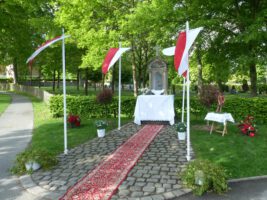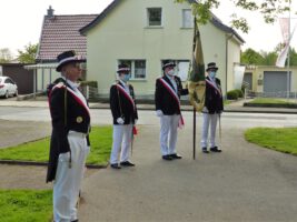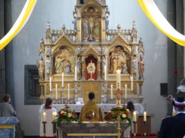 Mit Pastor Zwingmann, einer Fahne und Oberst Peter Stephan ging es zum neugestalten Bildstock am Friedhof. Anschließend wurde die heilige Messe unter Beteiligung des Schützenvorstandes gefeiert.
