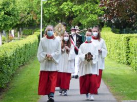 Auch in diesem Jahr konnte die St. Pankratius Schützenbruderschaft auf Grund der Corona Pandemie, ihren Schutzpatron nur in kleiner Formation bei der Pankratius-Prozession gedenken.