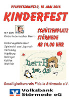 Am Pfingstsonntag, 15.05.2016 ist es wieder soweit. Das traditionelle Kinderfest des Geselligkeitsverein Fidelia findet auf dem Schützenplatz (bei schlechtem Wetter in der Schützenhalle) in Störmede statt. Beginn ist um