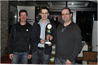 Drei Gewinner hatten wir im letzten Jahr beim Bundesliga-Tippspiel und so musste der Gewinner-Pokal nun 2 mal weitergegeben werden. Erster Besitzer war Michael Drockner, der den Pokal im letzten Jahr an Markus Struwe übergab und dieser musste ihn nun an den letzten der drei Gewinner, Andreas Leuchtmann übergeben. Was eignete sich besser zur Pokalübergabe als ein Bundesliga-Spiel. So traf man sich am gestrigen Sonntag, beim Bundesligaspiel Borussia Mönchengladbach gegen Schalke 04, um dort den Pokal weiter zu reichen. Highlight des Abends war der Anruf eines Schalke-Fans vom Schützenplatz, der es sich nicht verkneifen konnte, Michael Becker nach dem schnellen Führungstor der Schalker anzurufen, um ihm sein Beileid auszusprechen. Schadenfreude ist doch die größte Freude – doch wer weiß, wie das Spiel ausgegangen ist, weiß auch, wer zuletzt gelacht hat…