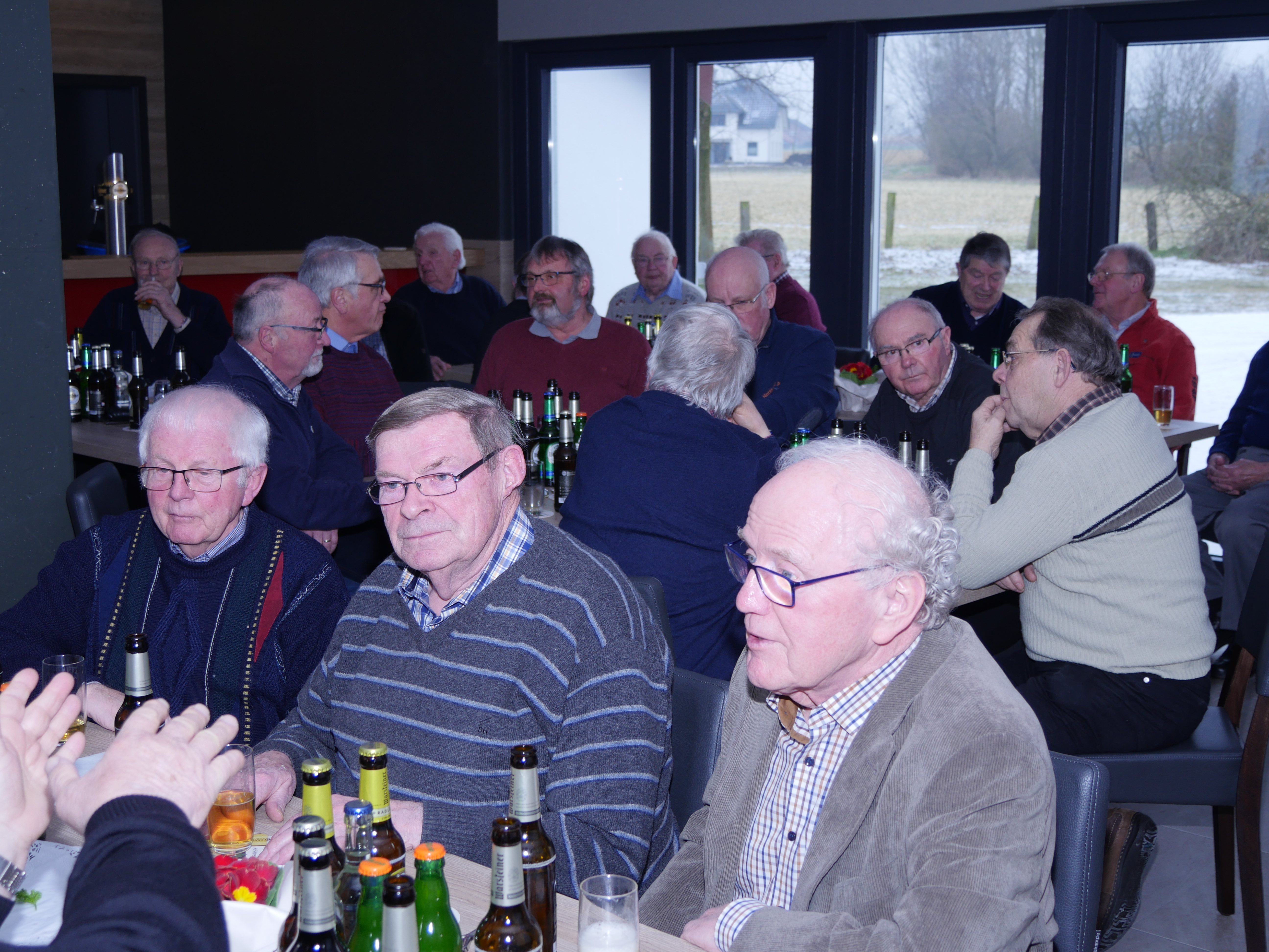 Schön ist er geworden, das war die einhellige Meinung der zahlreichen Senioren, die sich bei denkbar schlechtem Wetter zum Seniorennachmittag der Sankt Pankratius Schützenbruderschaft in den neu gestalteten Speiseraum der Schützenhalle aufgemacht hatten. Einige der Ehrenschützen waren an der letzten Renovierung desd Speiseraumes 1984/85 beteiligt. So war die Neugier schon verständlich, was sich in den vergangenen 8 Monaten des Umbaus so alles getan hat. Oberst Peter Stefan und Ehrenoberst Heinrich Siedhoff ließen das vergangene Jahr Revue passieren und erläuterten die vielfältigen Aktivitäten, an denen die Schützenbruderschaft teilgenommen hat sowie den Herausforderungen, denen man sich im vergangenen Jahr an der Halle gestellt hat. Waren das die neue Heizungsanlage, die in der Schützenhalle eingebaut worden ist, die Neueindeckung des Daches über dem Thekenraum und dem Speiseraum sowie der Umgestaltung von Speiseraum, Küche und Gaderobe, so ist dies für die Zukunft auf dem Platz, der Bau einer neuen Vogelstange. Anhand von drei Präsentationen nahm Archivar Dietmar Jacobs die Ehrenschützen mit auf eine Bildertour durch das letzte Schützenjahr, der erste Schwerpunkt lag auf dem vergangenen Schützenfest mit all seinen Höhepunkten, es folgte eine ausführliche Präsentation der Umbauarbeiten am Speiseraum und abschließend gab es dann Bilder vom letzten Ausflug der Ehrenschützen nach Meist und Langenstraße. Natürlich durfte ein Blick ins Archiv nicht fehlen, die Fahrt der Ehrenschützen 1988 nach Haus Düsse durfte auch nicht fehlen Traditionell in diesem Block wurden dann auch noch Bilder der 60-, 50-, 40- und 25-jährigen Jubelmajestäten und deren Hofstaaten gezeigt. So mach einer fand sich dort wieder.