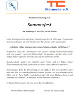Liebe Tennisfreundin und lieber Tennisfreund des TC Störmede. Zu unserem Sommerfest laden wir sehr herzlich ein. Wir starten unter dem Motto:
