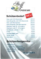 Na mal ehrlich, welchem Schützen geht es nicht so ? Schützenfest, Samstagmorgen noch mal eben die Uniform checken, ob noch alles passt und da sieht man plötzlich, die Fliege hat doch im letzten Jahr am späten Montagabend noch arg gelitten, die kann man nicht mehr tragen. Da ist guter Rat teuer…., aber in diesem Jahr wird am Schluitskamp Abhilfe geschaffen. Sabine Marx hat in Ihr umfangreiches Stofftraum-Sortiment nun auch um Schützenbedarf erweitert, vom Eichenlaub bis zur weißen Hose ist alles zu haben, was der gepflegte Schütze braucht. Auch die Preise sind „schützengerecht“, so dass in diesem Jahr die Waschmaschine über Schützenfest nicht mehr laufen muss.