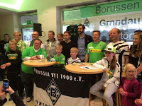 Am Pfingstsonntag um 14 Uhr besuchten die Gladbach-Stars Tony Jantschke (Verteidigung) und Christopher Heimeroth (Torhüter) die Störmeder Grandaufohlen. Frank Steuer und Detlev Lass hatten das Sportlerheim komplett in grün-schwarz-weißen Outfit umgestaltet, so dass man sich vorkam wie im Pressebereich von Mönchengladbach. Tony Jantschke, der am Samstag gegen Darmstadt 98 noch gespielt hatte, beantwortete die Fragen der ca. 100 angereisten Fans zusammen mit Christopher Heimeroth geduldig. Die meisten Fragen hatte Anna Steuer, die sich sehr gut auf die beiden vorbereitet hatte. Nach gut einer Stunde lockerem Plausch ging es dann mit Fotos und Autogrammen weiter.